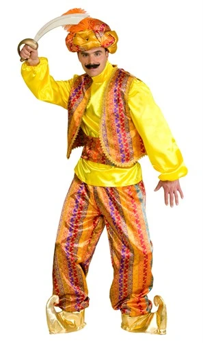 Ali, het traditionele kostuum uit 1001 nacht voor carnaval of themafeest. Het kostuum bestaat uit een broek, een blouse, een vest en een sjerp.