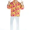 Blouse met ruches in het zwart, met dit prachtige kostuum uit de seventies krijgt men het gevoel van love and peace en zullen alle ogen op u gericht zijn. Dit Flower Power kostuum is zeer geschikt voor carnaval, theater, entertainment, themafeest of flower power party. Voor dames en heren. De peace ketting en de plateaulaarzen kunnen apart besteld worden.