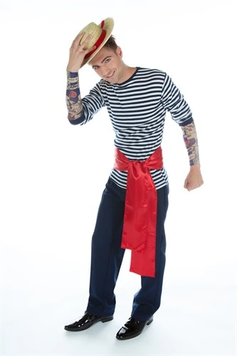 Strepenshirt blauw/wit, het shirt met het gestreepte design uit de oude traditie voor een matroos of clown voor carnaval, entertainment, theater, event of themafeest.