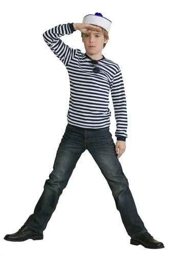 Strepenshirt blauw/wit, het shirt met het gestreepte design uit de oude traditie voor een matroos of clown voor carnaval, entertainment, theater, event of themafeest.