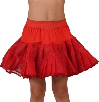 Petticoat Cindy kind rood, net zoals het kanten broekje mag deze petticoat niet ontbreken bij het kostuum voor dansmariekes voor carnaval, themafeest of entertainment. Ook in andere kleuren verkrijgbaar. Deze onderrok uit de jaren 50 is geschikt voor iedere rok.