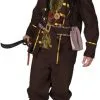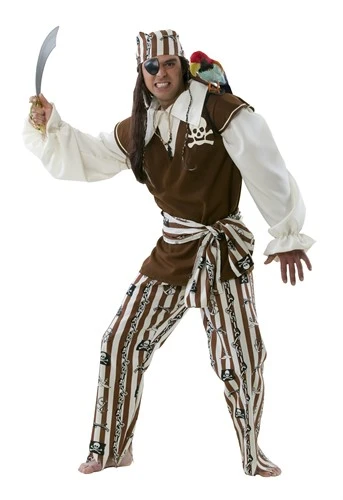 Piraat bruin/ecru, het avontuur met de captain en de zeerover kan beginnen met carnaval, themafeest, entertainment, kinderfeestje, theater of event. Het kostuum bestaat uit een blouse, broek, sjerp en bandana en is ok verkrijgbaar voor kleine piraten. De oogklep, verrekijker en zwaard kunnen apart besteld worden.
