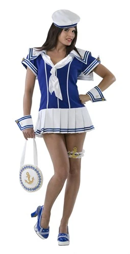 Sexy marine-kostuum, het sexy uniform voor een vrouwelijke matroos, als collega van de kapitein voor carnaval, themafeest, theater, entertainment of een ander event.