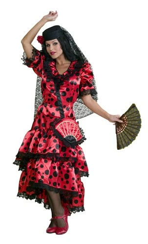 Spaanse jurk, het traditionele kostuum voor carnaval of themafeest. Ook verkrijgbaar voor kinderen.