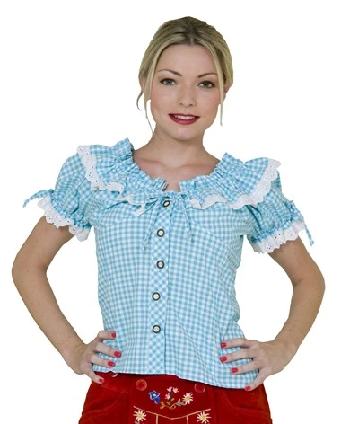 Tirolerblouse Oktoberfeest Turkoois/wit